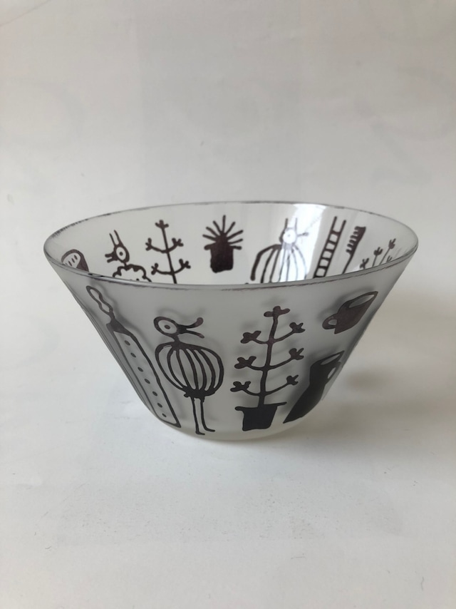 富山で制作するワタナベサラさん。 色の入ったガラスで吹いたベースにポップな絵柄のマスキングをし、サンダーブラストで仕上げ。 シンプルなカタチで使いやすく、絵柄が透明で浮き出るのが楽しいです。 径:14.5cm、高さ:8cm #galleryten#ギャラリーテン#ワタナベサラ#ガラス#glass#器