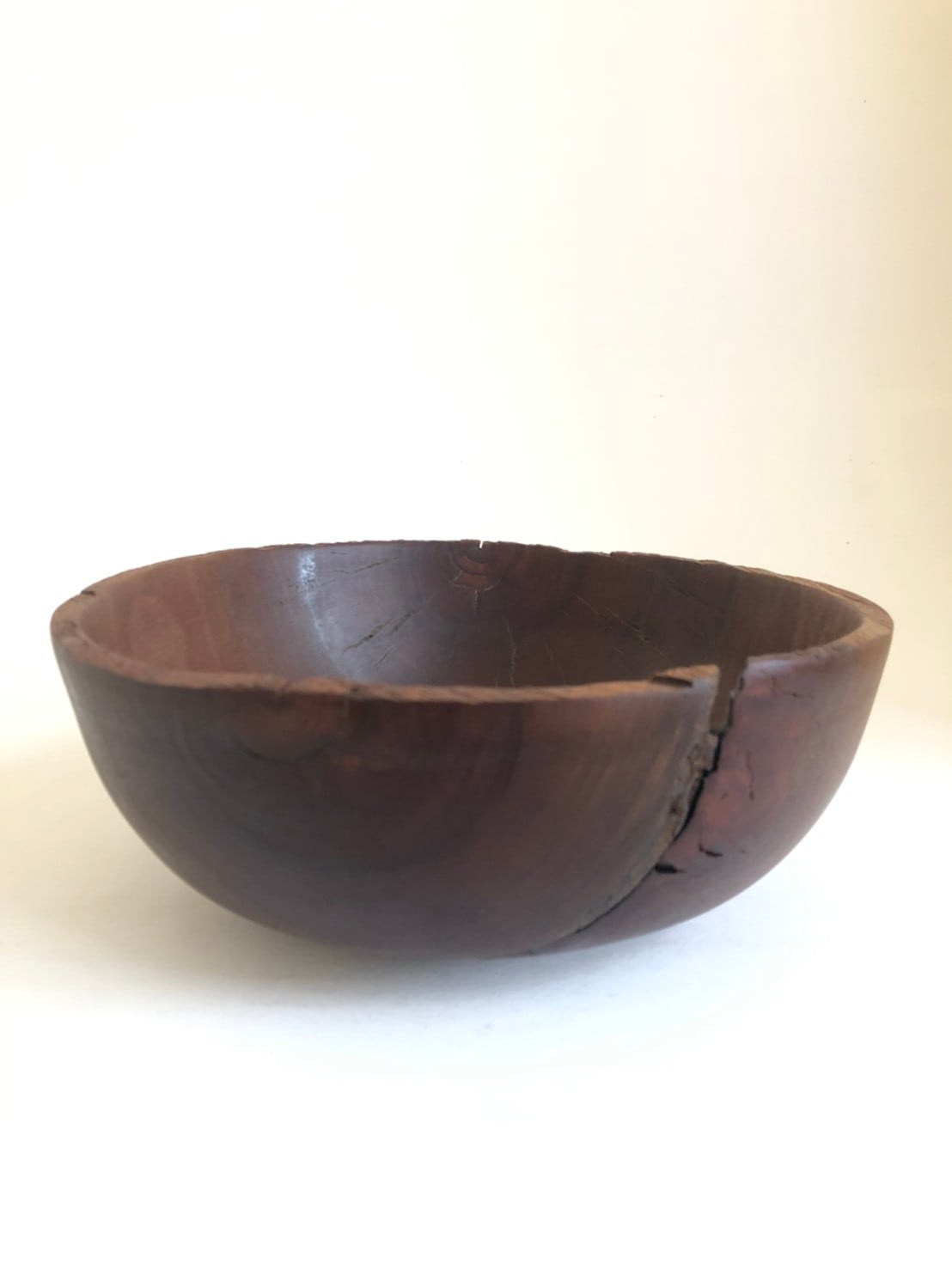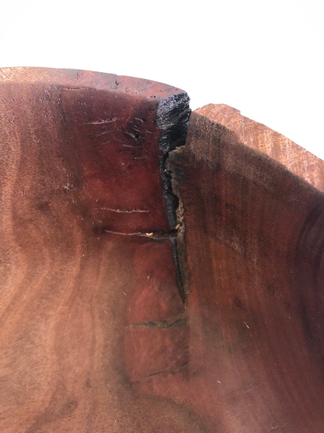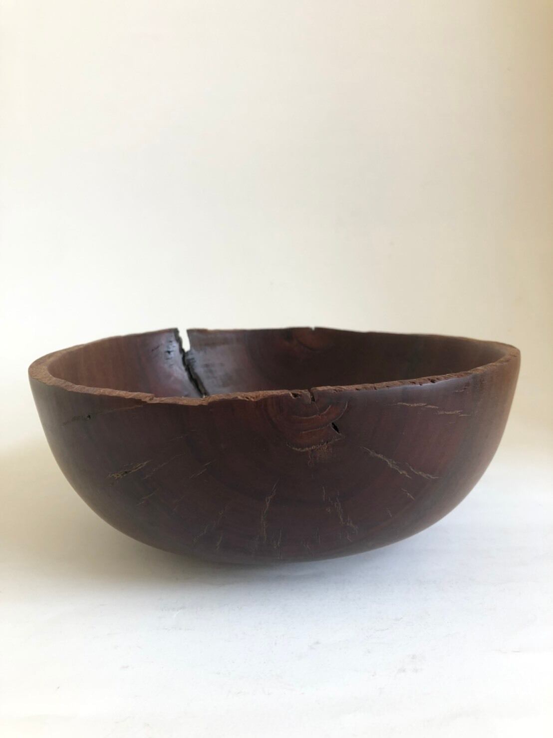 生木の塊を轆轤挽きしたのち、静かに静かにゆがんだり割れが入ったり、