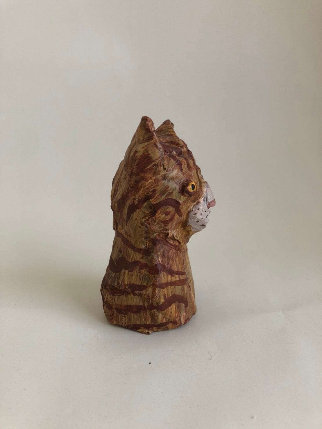 一見、木彫かと思いきや、段ボールで作られた彫刻。