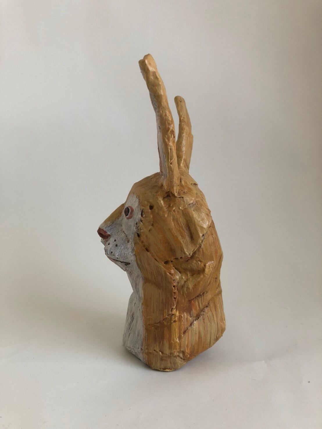 一見、木彫かと思いきや、段ボールで作られた彫刻。