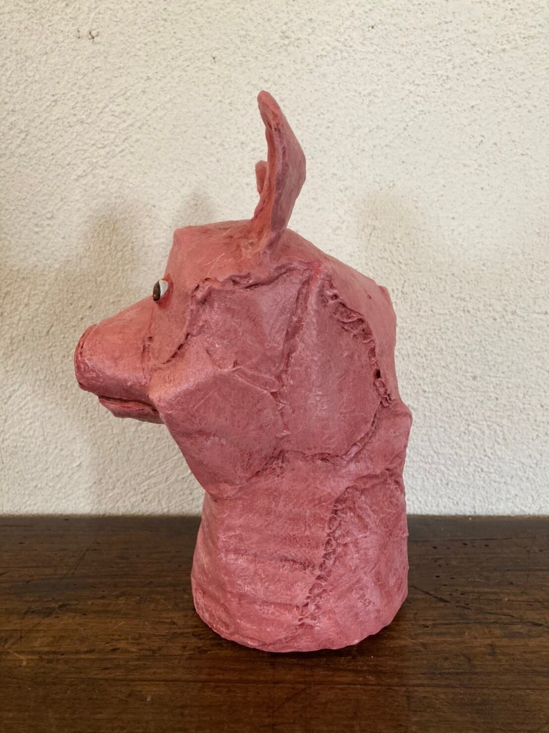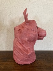 一見、木彫かと思いきや、段ボールで作られた彫刻。