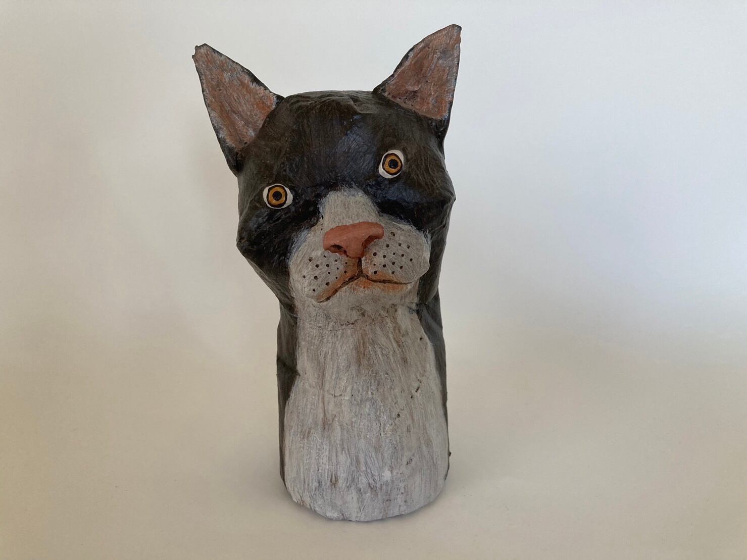 一見、木彫かと思いきや、段ボールで作られた彫刻。