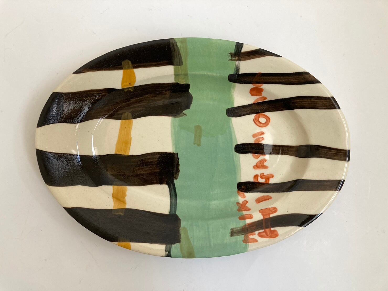 ミカさんの自由な発想でワクワクするような絵柄のオーバルプレートです。